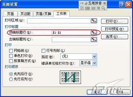 在Excel做好的工資表中,執(zhí)行“文件”→“頁面設(shè)置”命令,在打開的“頁面設(shè)置”對話框中切換到“工作表”標簽,單擊“頂端標題行”右側(cè)的按鈕,在工作表中選擇工資表的頭部區(qū)域,然后單擊回車鍵,使“頁面設(shè)置”對話框如圖1所示,然后單擊“確定”按鈕使設(shè)置生效。