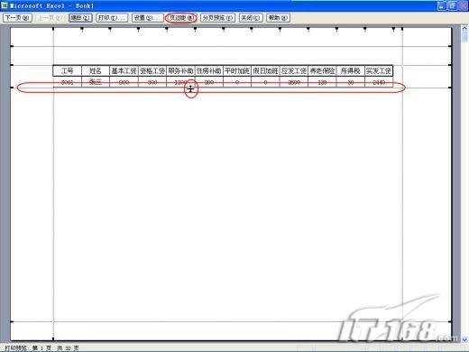 這里利用的是一種類似的“頁眉”的方式實現(xiàn)每一頁打印后都有一個“標題行”,這樣保證工資的明細項目在工資條上體現(xiàn),然后每一個“標題行”下方跟一條記錄,最后打印出的效果就是工資條了,具體操作如下。