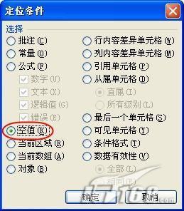第二步:執(zhí)行“編輯”→“定位”命令,在打開的“定位”對話框中單擊“定位條件”按鈕,在打開的“定位條件”對話框中,選擇“空值”,然后單擊“確定”按鈕(如圖6)。