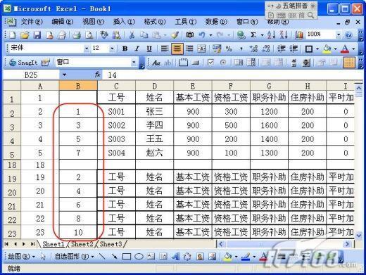 其實用Excel打印工資條,歸根結(jié)底就是讓Excel制作的工資表格中,一行工資細目數(shù)據(jù),一行員工的記錄。如果在每一個員工數(shù)據(jù)的上面插入一行工資細目數(shù)據(jù)顯然我們的要求也就完成了,當然純手工的一行一行插入顯然是個“不可能完成的任務(wù)”,這里需要有點小技巧。
